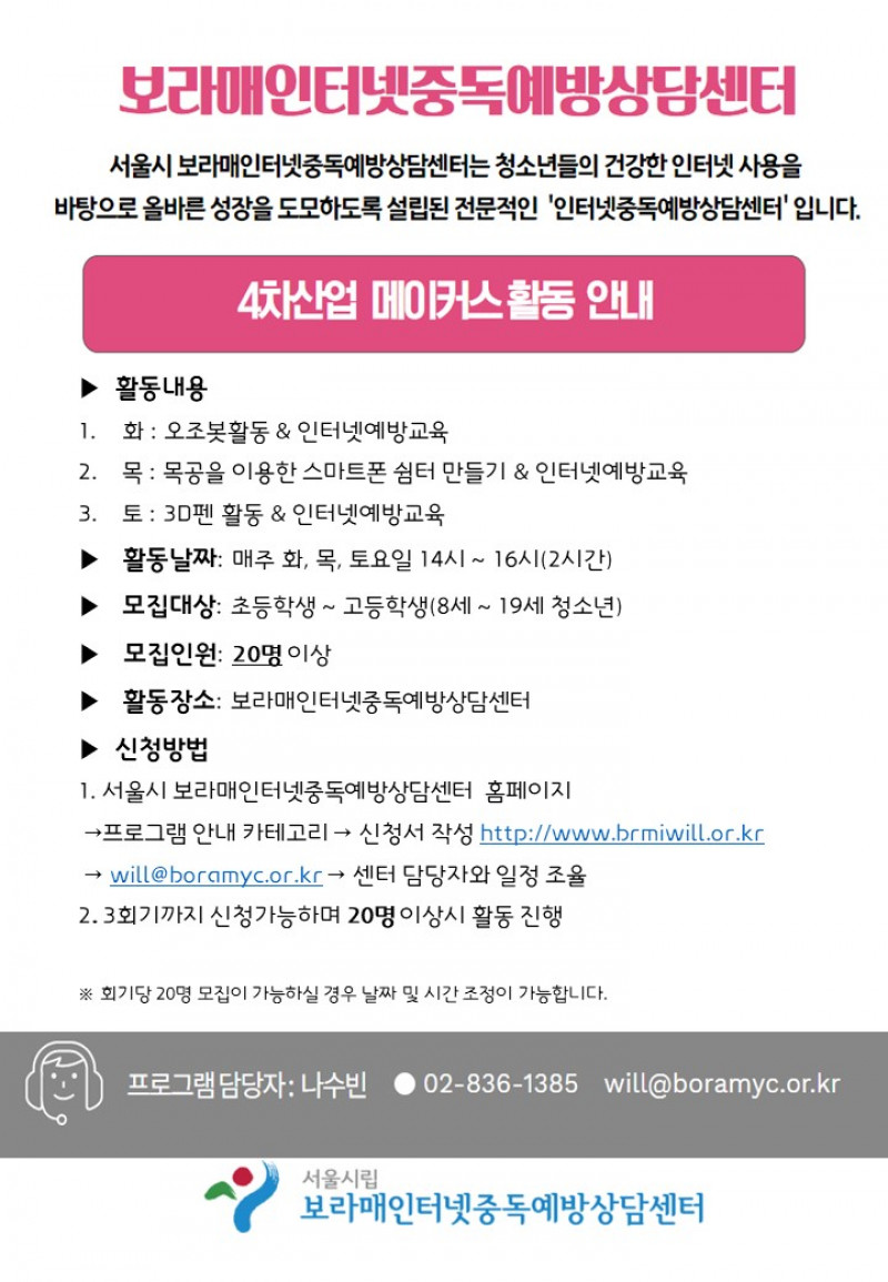 | ÆÄÀÏ÷ºÎ : 2019³â º¸¶ó¸ÅÀÎÅͳÝÁßµ¶¿¹¹æ»ó´ã¼¾ÅÍ 4Â÷»ê¾÷ Makers Ȱµ¿.hwp |