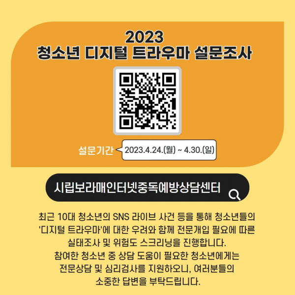 | 2023³â û¼Ò³â µðÁöÅÐ Æ®¶ó¿ì¸¶ ¼³¹®Á¶»ç Âü¿© ¾È³» | |