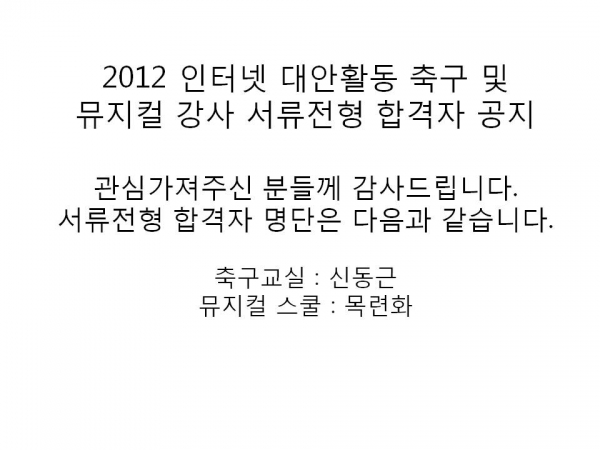 | 2012 ÀÎÅÍ³Ý ´ë¾ÈȰµ¿ Ã౸ ¹× ¹ÂÁöÄà °»ç ¼·ùÀüÇü ÇÕ°ÝÀÚ | |