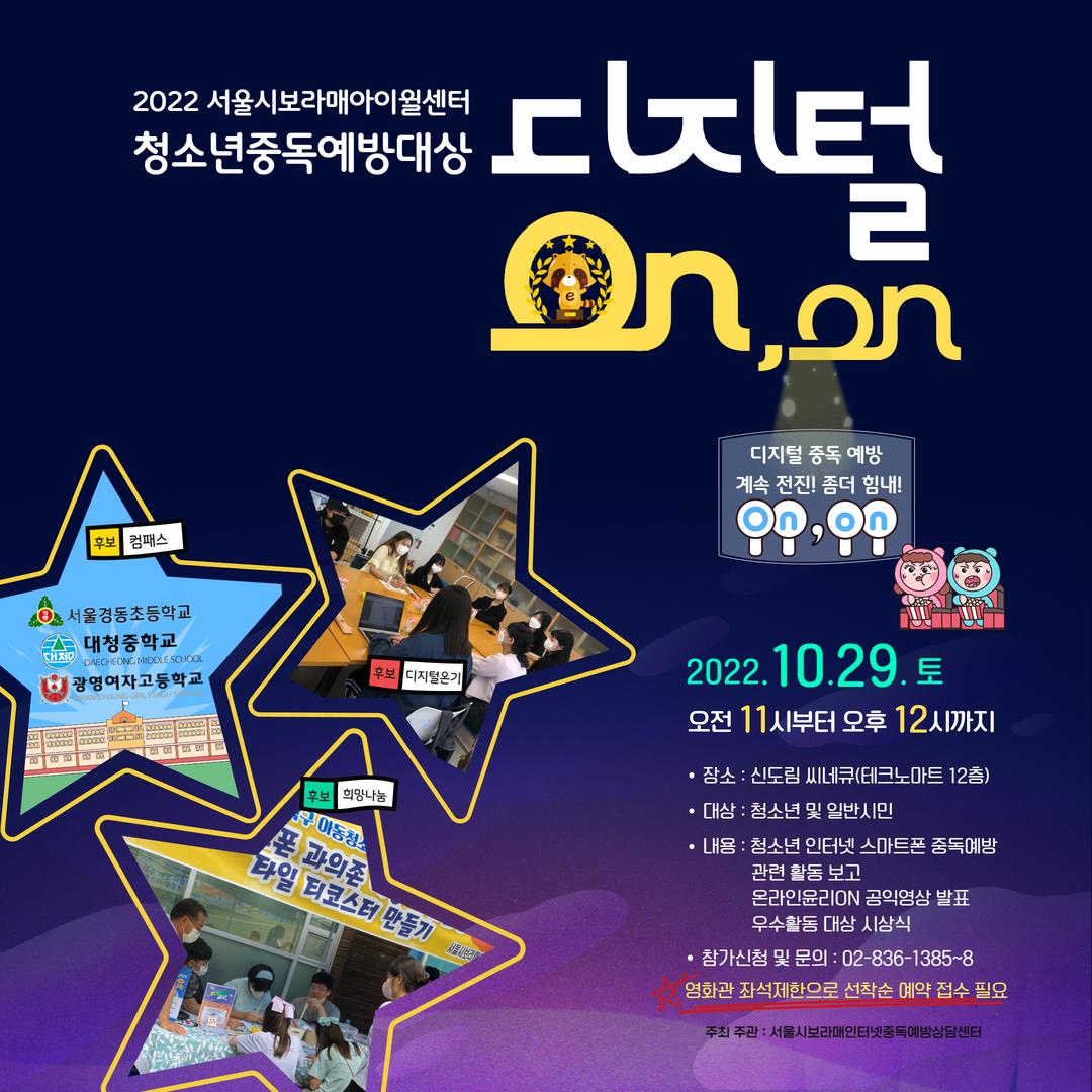 | [º¸µµÀÚ·á] ¼¿ï½Ãº¸¶ó¸ÅÀÎÅͳÝÁßµ¶¿¹¹æ»ó´ã¼¾ÅÍ, ¡®2022³â ¼¿ï½Ãº¸¶ó¸ÅÀÎÅͳÝÁßµ¶¿¹¹æ»ó´ã¼¾ÅÍ Ã»¼Ò³âÁßµ¶¿¹¹æ´ë»ó µðÁöÅÐ ON, on¡¯ ¿î¿µ | |