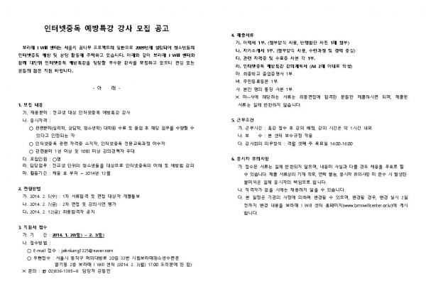 | 2014³â ÀÎÅͳÝÁßµ¶ ¿¹¹æÆ¯° °»ç ¸ðÁý °ø°í¹® | |