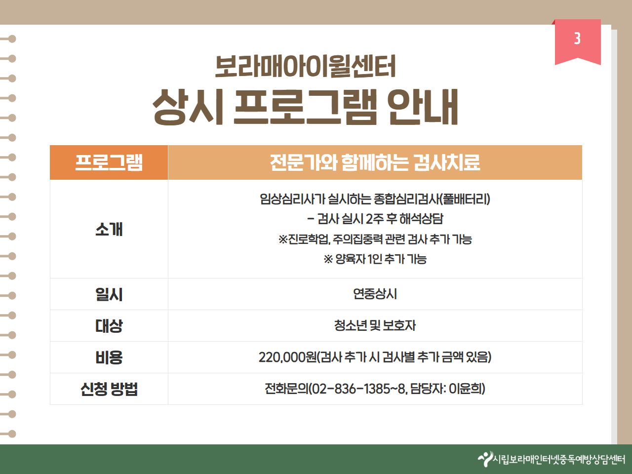 | [Ä«µå´º½º] [12¿ù ¸ðÁý] º¸¶ó¸ÅÀÎÅͳÝÁßµ¶¿¹¹æ»ó´ã¼¾ÅÍ »ó½Ã ¹× ¸ðÁý ÇÁ·Î±×·¥ ¾È³» | |